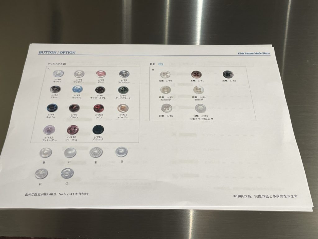 ボタンの色・素材もお選びいただけます。